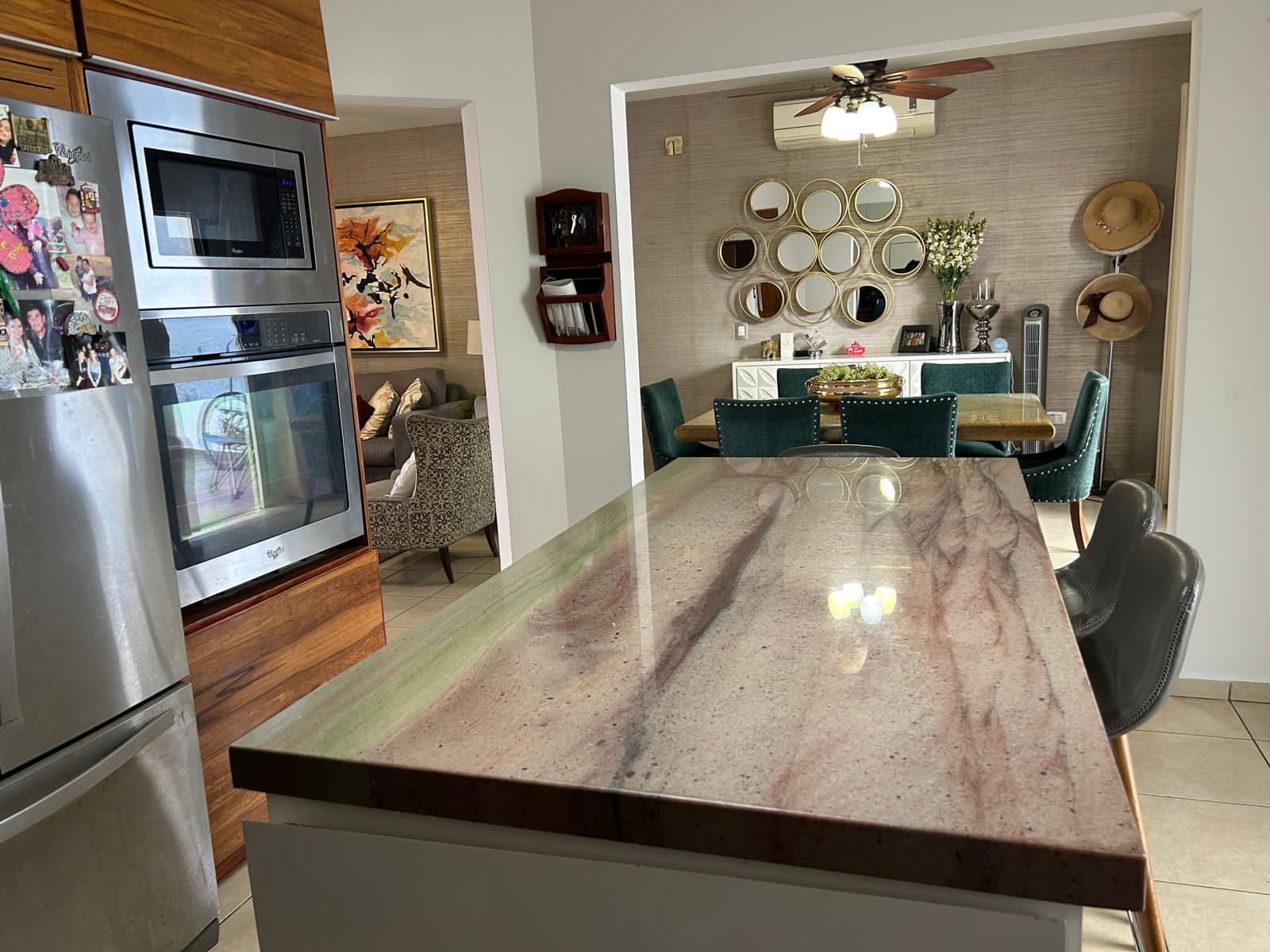 - Cocina con integral con alacena equipada con parrilla, microondas y horno