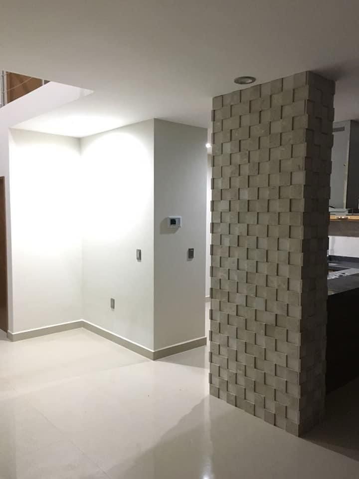 En planta baja cochera para dos carros, vestívulo, 1/2 baño, cocina integral con granito, amplio cuarto de lavado, sala comedor y patio.