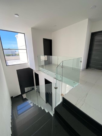 ✨ Escaleras de granito con barandal de cristal templado.