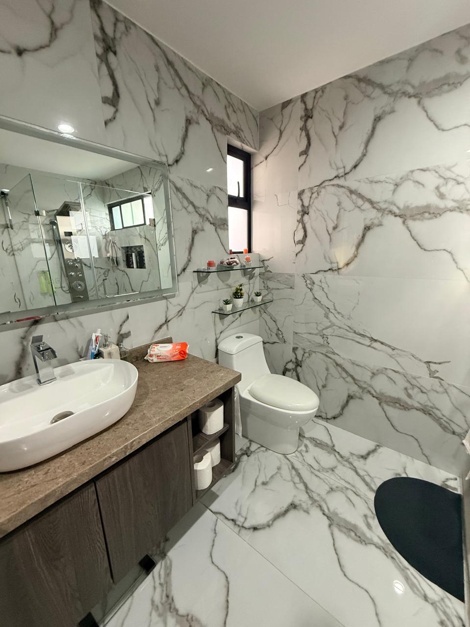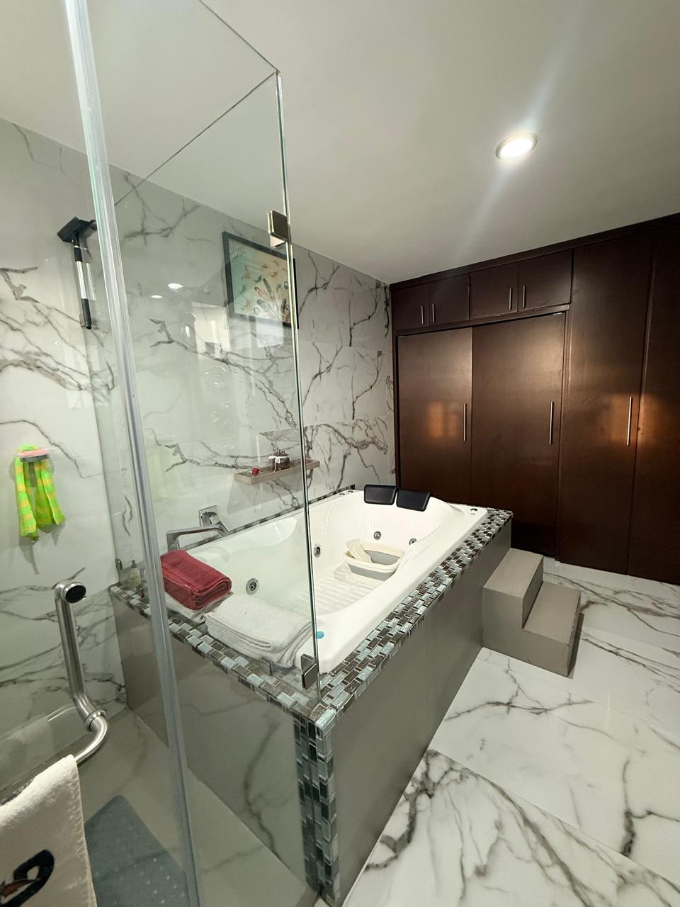 La recámara principal tiene jacuzzi, balcón.
