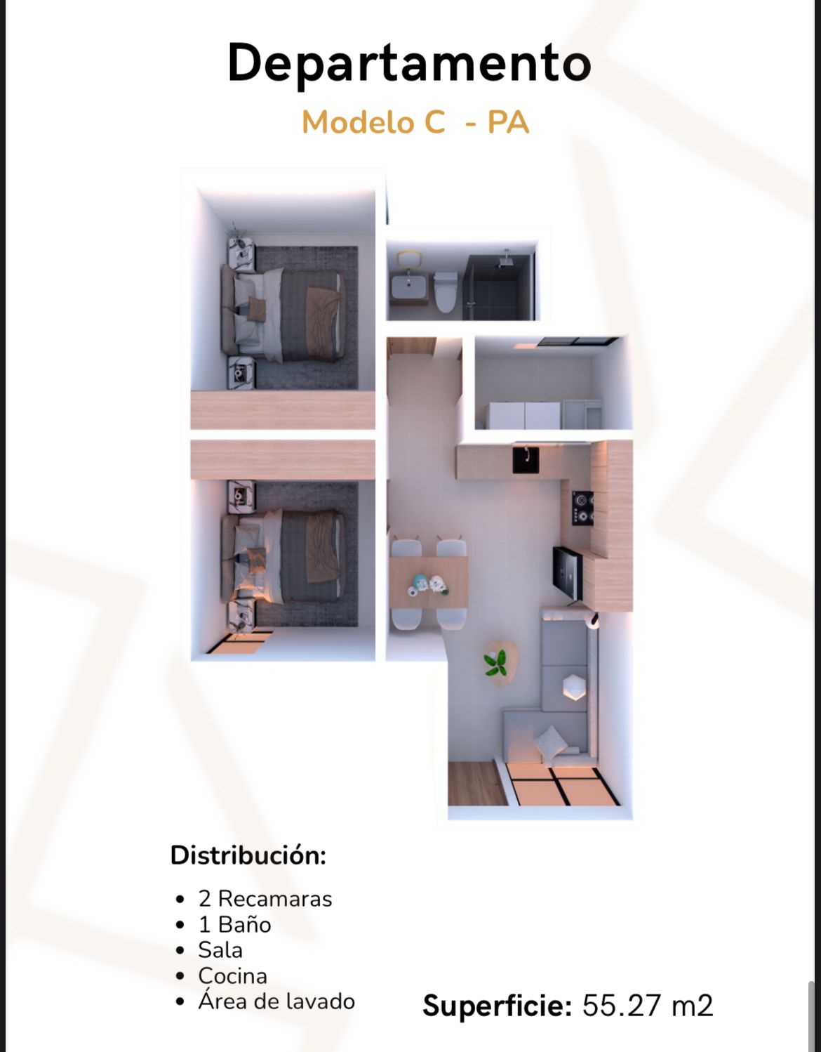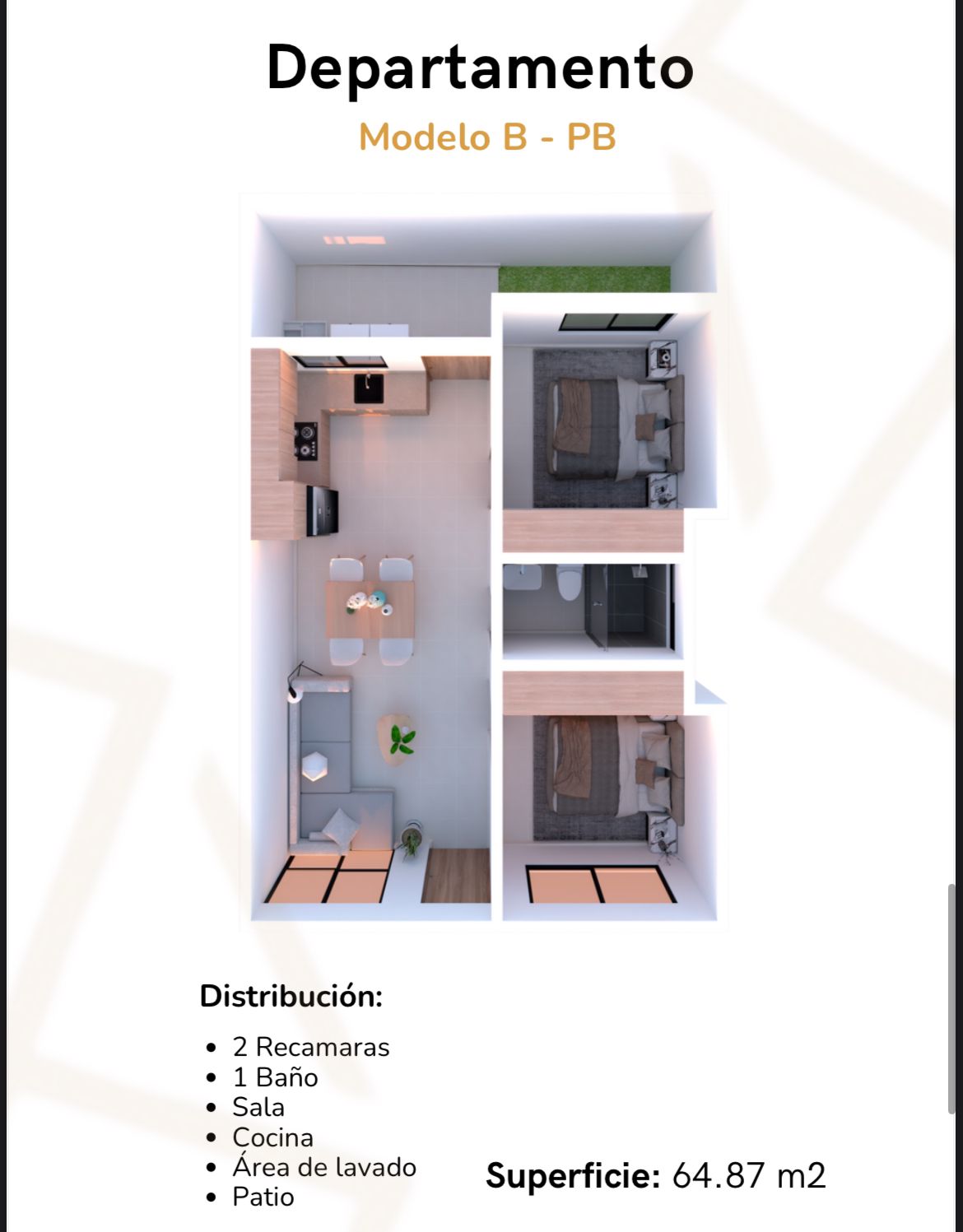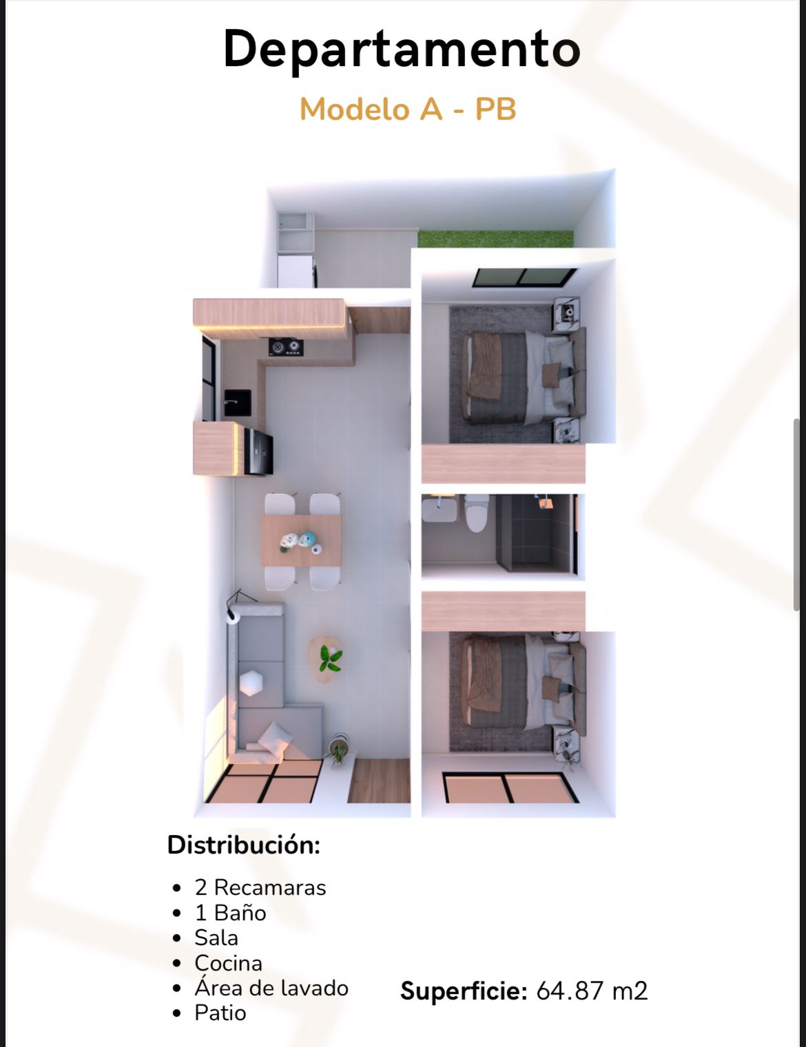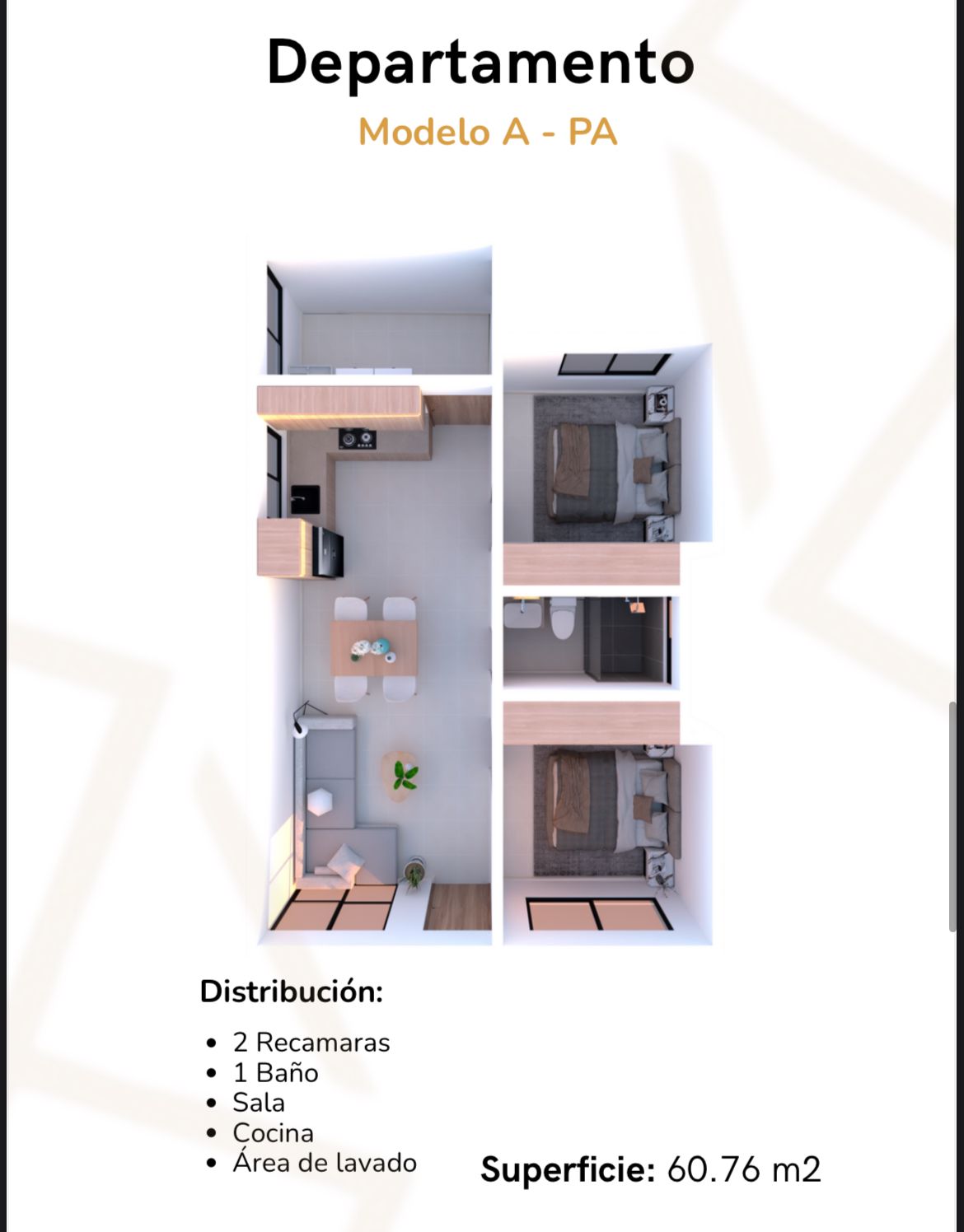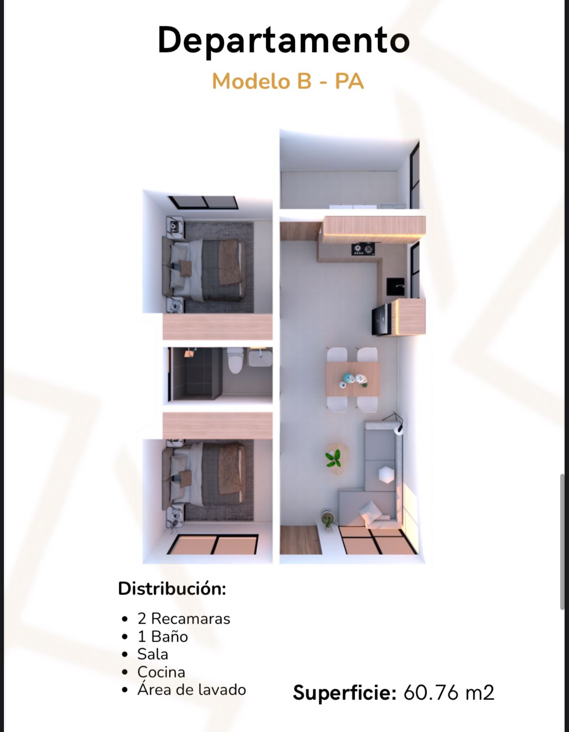 •Acabados de primera: pisos cerámicos de 60 x 60 cm