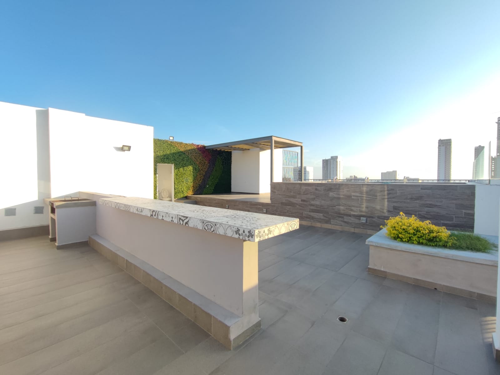 Lo mejor… ¡Las amenidades! 🌴☀️ Disfruta de atardeceres inolvidables en el Roof Garden, relájate en la alberca o vive con total tranquilidad gracias a la seguridad 24/7. 🛡️🏊♂️