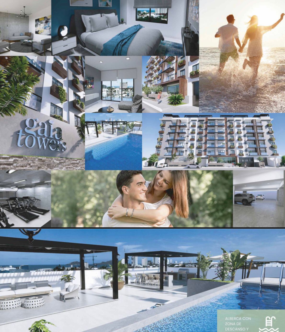 Departamentos GAIA TOWERS es un complejo de 3 torres dividida en 6 niveles ubicado a tan solo 4 cuadras del malecon. Cada torre contara con su propio elevador, lobby, roof garden, gimnasio, area de convivencia con asadores, alberca y estacionamiento techado en 2 niveles.