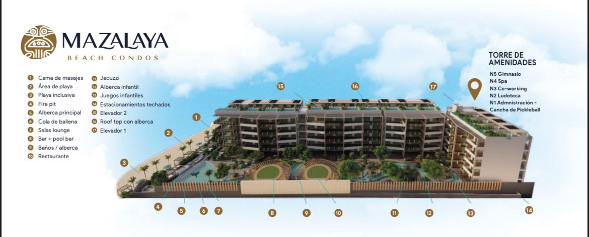 Vive cada día con el sonido de las olas y los atardeceres más espectaculares en Mazalaya, un exclusivo desarrollo de 75 departamentos de 1, 2 y 3 recámaras, algunos con rooftop y alberca privada.