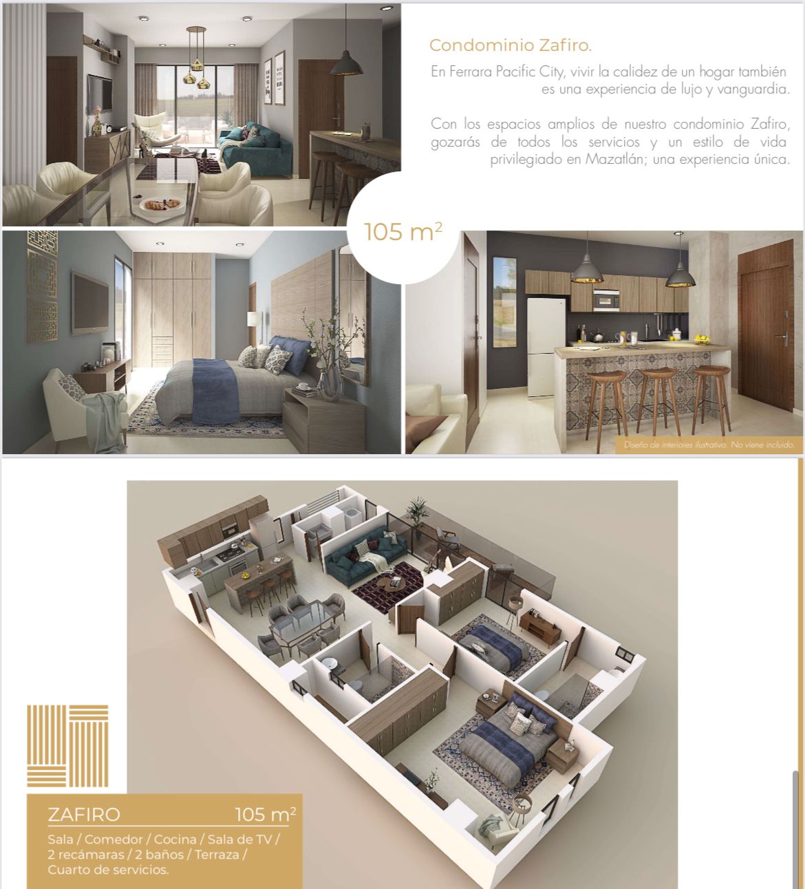 Modelo Opalo 85 m2, Modelo Zafiro 105 m2 y Penthouse 145 m2.
